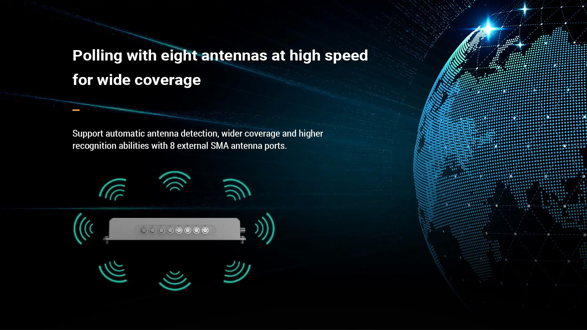 ● 700+ tags/sec. read rate, with 8 ports lightning working atennna switch speed.